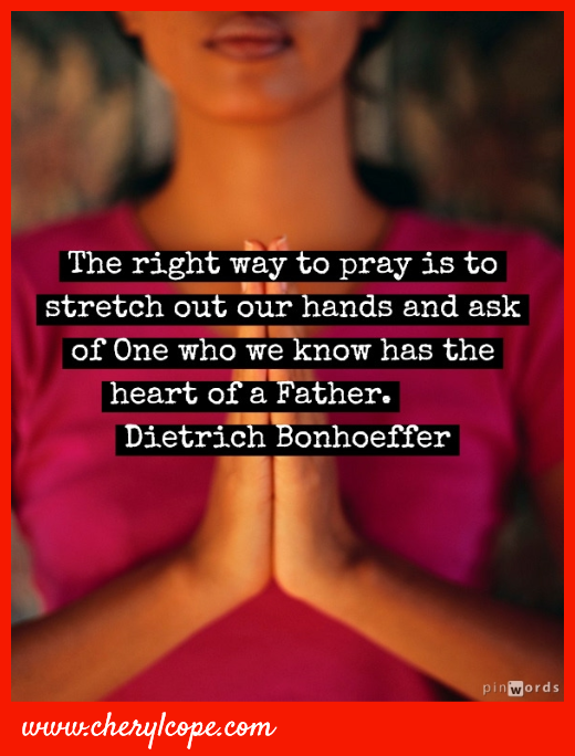 The right way to pray is to stretch out our hands and ask of One who we know has the heart of a Father. Dietrich Bonhoeffer Click to tweet this quote. To “pin” the pic, hover your mouse over it.