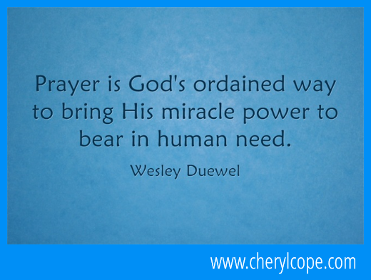 Prayer is God’s ordained way to bring His miracle power to bear in human need. Wesley Duewel Click to tweet this quote. To “pin” the pic, hover your mouse over it.