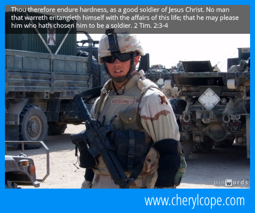 Thou endure hardness, as a good soldier of Jesus Christ. No man that warreth entangleth himself with the affairs of this life.; that he may please him who hath chosen him to be a soldier. 2 Tim. 2:3-4 KJV