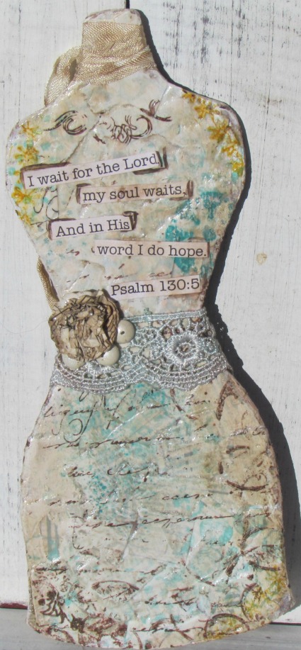 A5. I chose mixed media. It’s not perfect as I am not perfect. I describe my art as chaotic because life can be, if we allow it. When I put His word on it, it’s an expression of letting me know that no matter how chaotic it gets, He’s with me and in control and I am to never forget that.