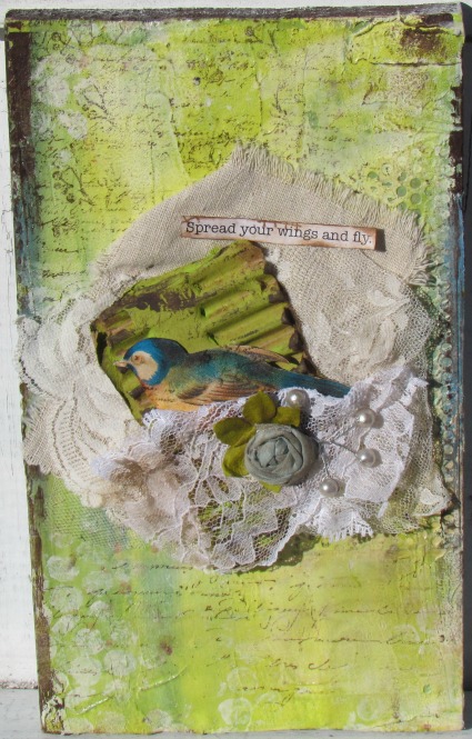 I have loved to doodle and draw since I was a little girl. That love went dormant for to many years. I started altering hang tags in 2006 that had an encouraging word on them and would send them to Enchanted Makeovers and they would be shared with ladies who are on a new journey in their life. My love for mixed media began not long after when I watched my first workshop online and fell in love with it. I’ve not looked back. This art has helped me through a lot of things in my life, it really heals your soul.