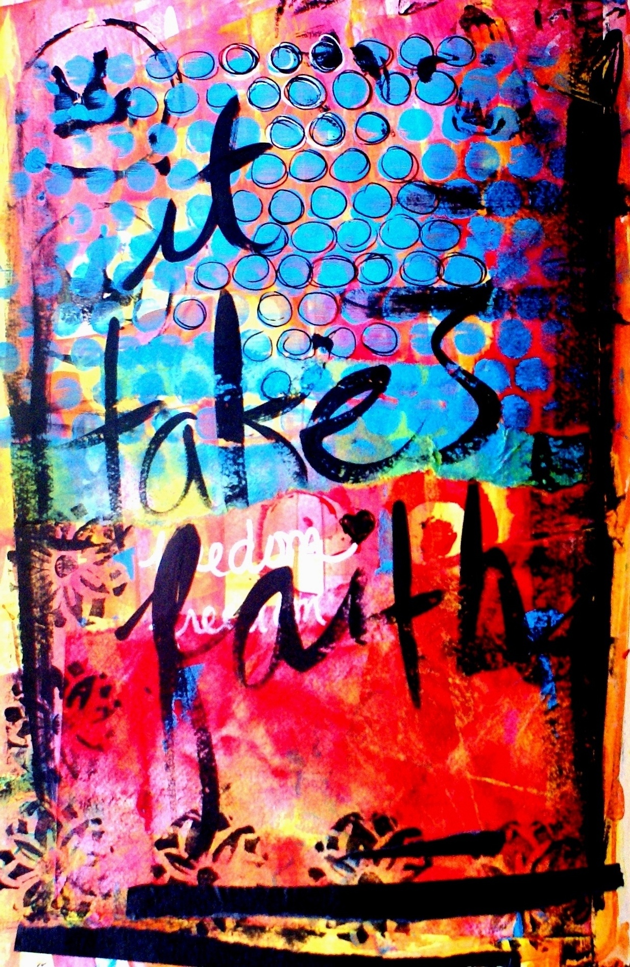 A3.My primary medium of working is visual journaling. I love working out my feelings on the page in color, image and words. From time to time I enjoy creating on canvas.