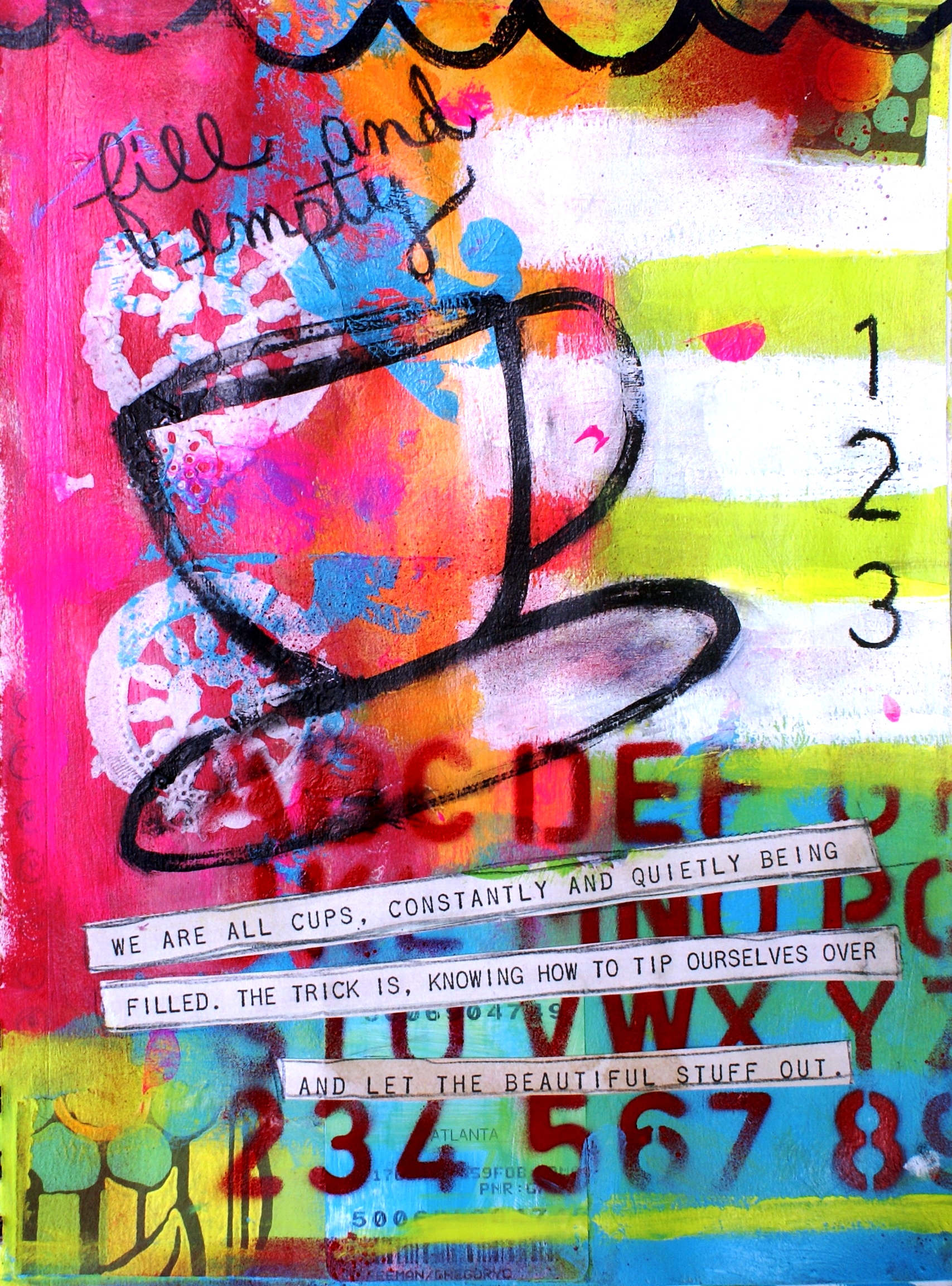 A few years ago, this well-read, southern-bred, mom of three, realized a desire to dig deeper into her own heart-wounds and invite God into her hurt. The artist in her began experimenting with layering images, patterns and text into journal pages that captured words and feelings in a more coherent way.