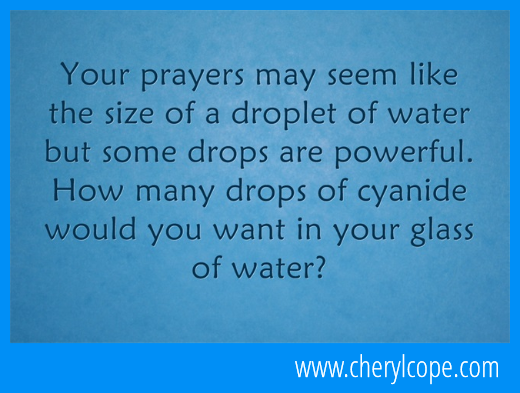 Your prayers may seem like the size of a droplet of water but some drops are powerful. How many drops of cyanide would you want in your glass of water?